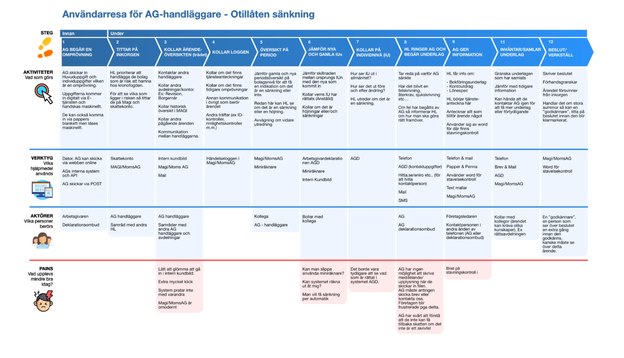 At the Swedish Tax Agency, Gean designed a crucial internal tool that transformed and enhanced how caseworkers analyze taxpayer histories. The system needed to present complex, multi-period data in an accessible format that would support informed taxation decisions.Given the tool's intended daily use by caseworkers, achieving a pleasant user experience was imperative, while striking a delicate balance between innovative interaction design and adhering to established internal work habits and conventions.