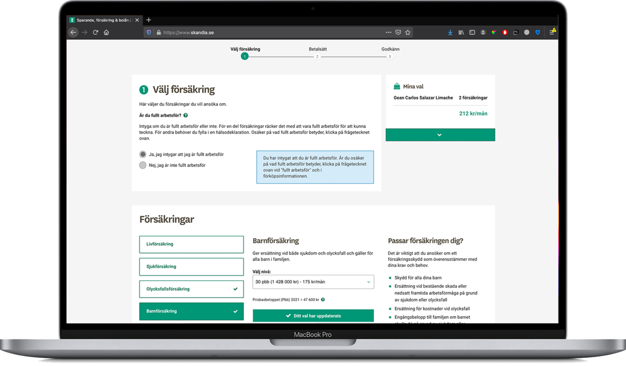 Skandia sought a revamp of outdated design and user flows on their website due to inefficiencies in conversion rates. The challenge involved a complete redesign of the user flow, incorporating limited visual components from the organization's identity. This overhaul needed to adhere to legal guidelines on both desktop and mobile platforms.The objective was to create a user-friendly flow that existing and potential customers could easily comprehend. The ultimate goal was not only for customers to understand and select presented products but also to guide them in making the right choices. The entire process needed to feel seamless and overcoming jurisdictional dependencies.